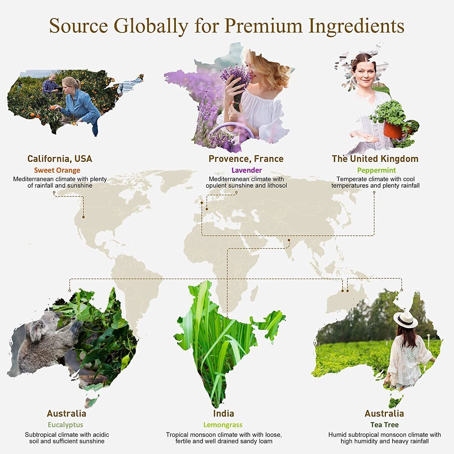 Fragrances: Lavender/ Jasmine/ Eucalyptus/ Vanilla/ Peppermint/ Sandalwood/ Frankincense/ Sweet Orange/ Ylang Ylang/ Lemon/ Rose/ Bergamot/ Tea Tree/ Clove/ Lemongrass/ Patchouli/ Rosemary/ Geranium/ Citronella/ Cinnamon/ Grapefruit/ Chamomile/ Cedarwood/ Juniper/ Ginger/ Tangerine/ Camphor/ Thyme/ Cajeput/ Cypress/ Fennel/ Basil/ Myrrh/ Black Pepper/ Vetiver/ Clary Sage/ Pine Needles