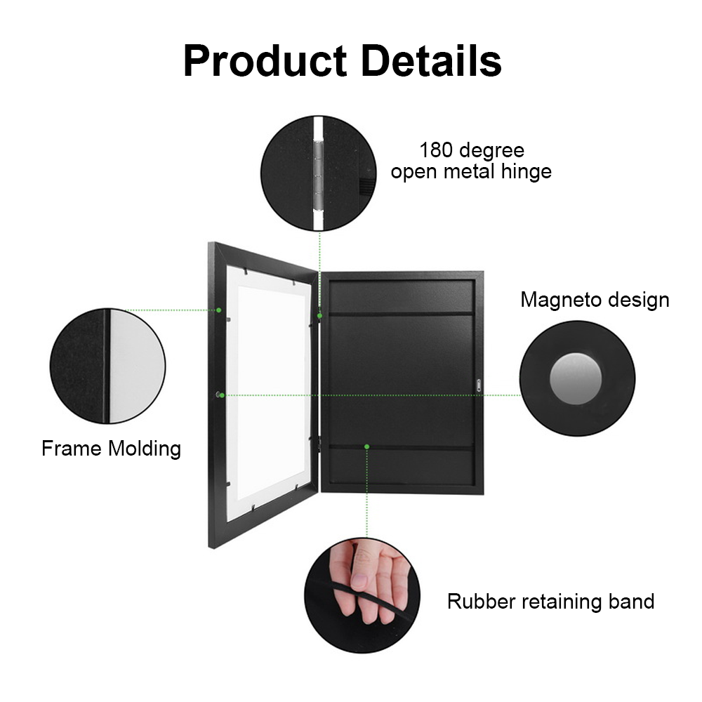 1. Multifunction: The contemporary design lets you display artwork and photos in the best possible way with the frame's front has clear board.